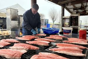 En maar zalmpies roken deze man. Fluitend. Want ja, het was koud en grijs, maar wél droog (prijs de Heer!)